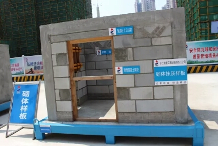 會后進行現(xiàn)場觀摩,工程管理部及各項目經(jīng)理首先認真觀摩了現(xiàn)場設置的模板立樣展示區(qū),并對值得學習的樣板及細節(jié)拍照留影。工程管理部質(zhì)量主管王均家指出,展示區(qū)的樓梯施工樣板、主體結(jié)構(gòu)樣板以及砌體抹灰樣板的細節(jié)處理還是值得我們學習的。