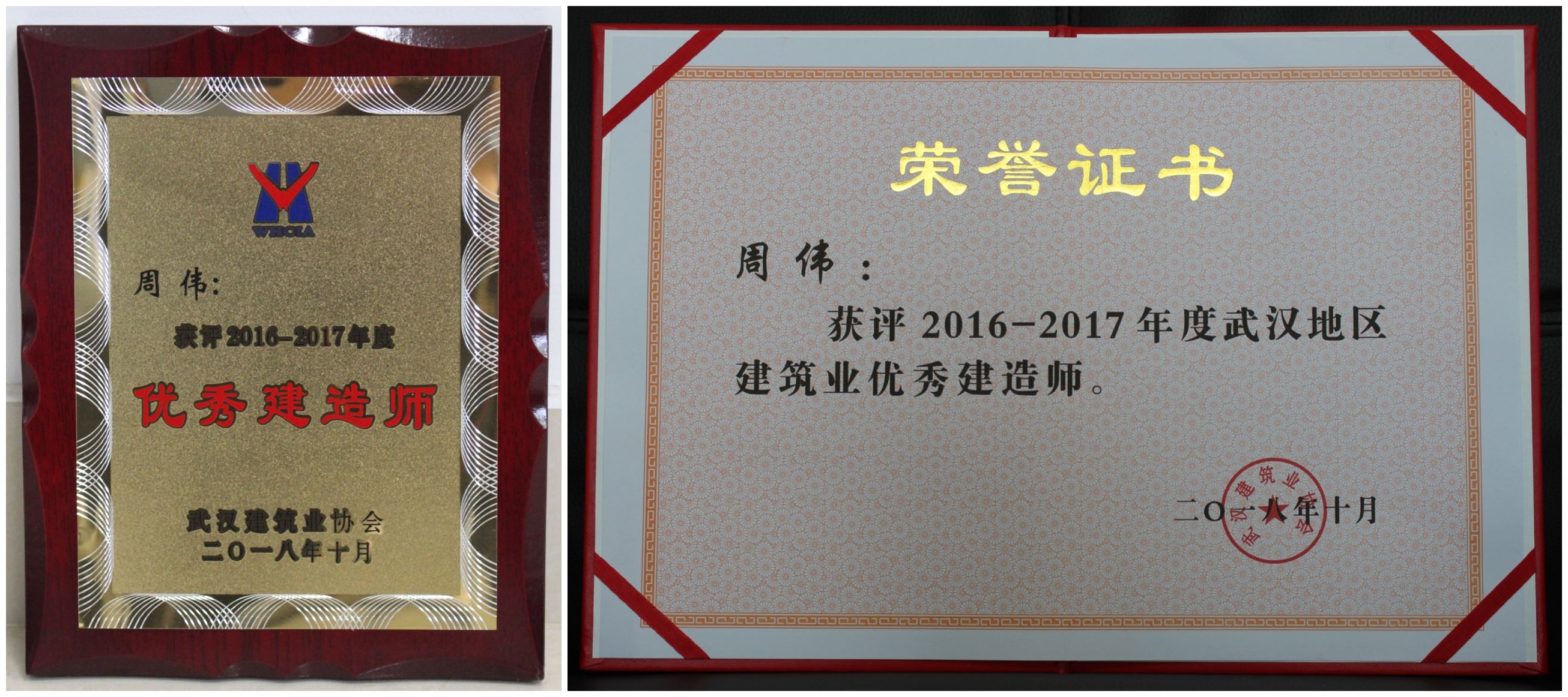 項目經(jīng)理周偉榮獲“2016-2017年度武漢地區(qū)建筑業(yè)優(yōu)秀建造師”稱號