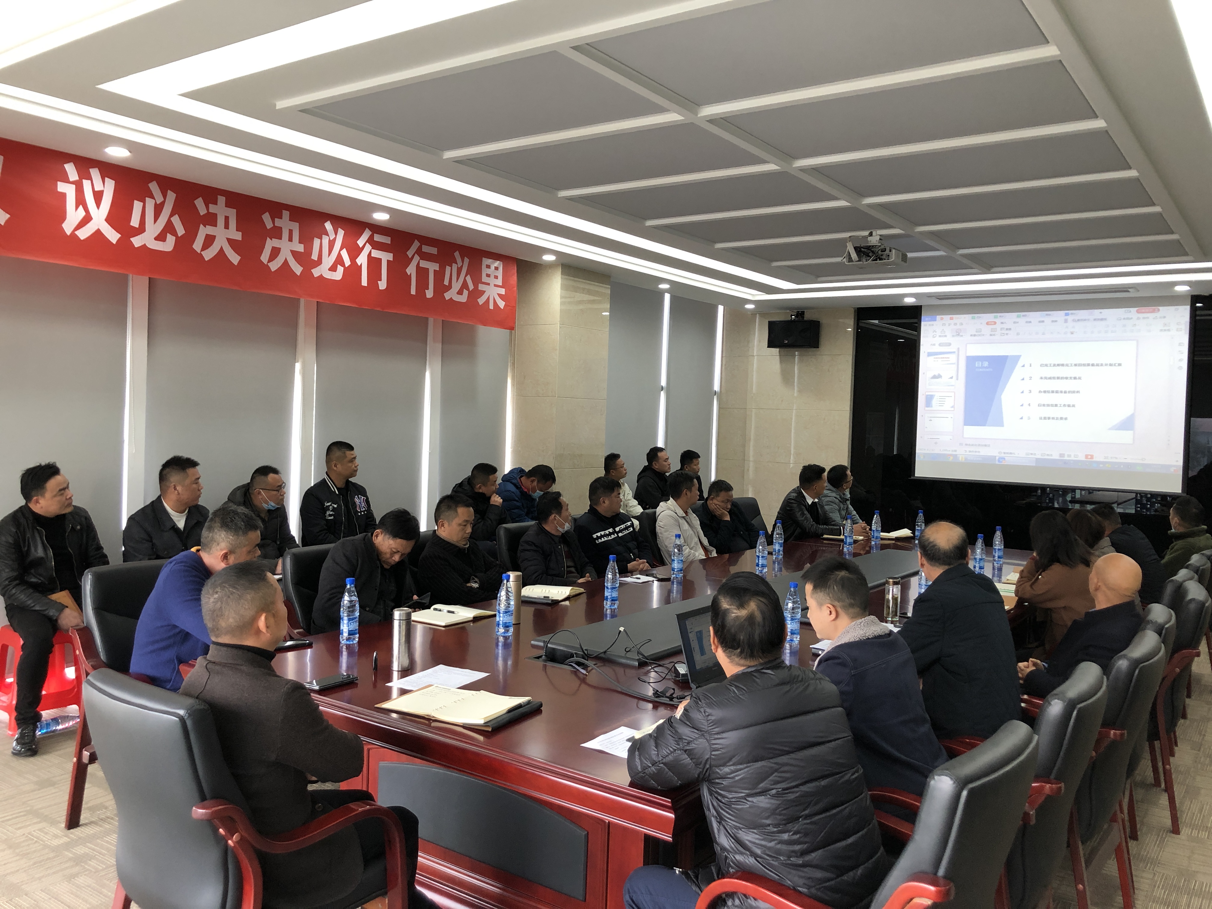 會上,財務(wù)部、工程部、招投標(biāo)部、物資供應(yīng)部及法務(wù)部部長分別就項目應(yīng)收應(yīng)付款項、項目完成產(chǎn)值及施工情況、已完工及即將完工項目結(jié)算情況、人材機合同款項支付時間節(jié)點、項目訴訟糾紛等事項進行了匯報。