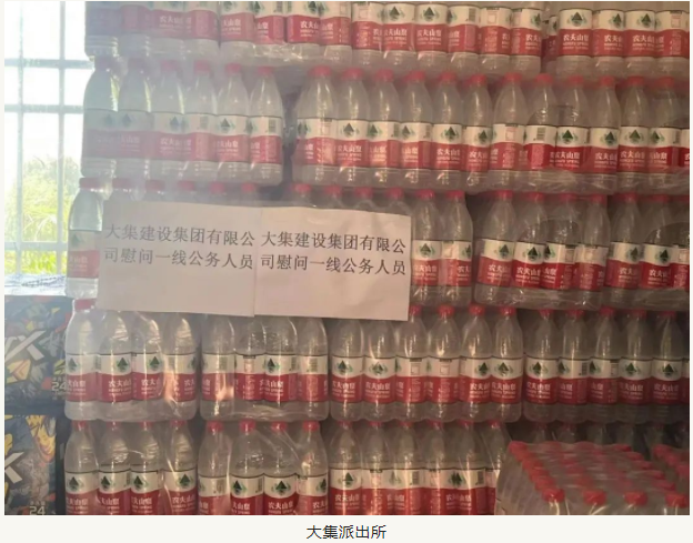 活動(dòng)中,湖北大集建設(shè)集團(tuán)分別向大集城管、大集派出所、大集交通隊(duì)、奓山派出所和奓山交通隊(duì)贈(zèng)送了100箱礦泉水和20箱紅茶,并表達(dá)了對(duì)一線民警、交警和城管人員在高溫下堅(jiān)守崗位的衷心感謝!