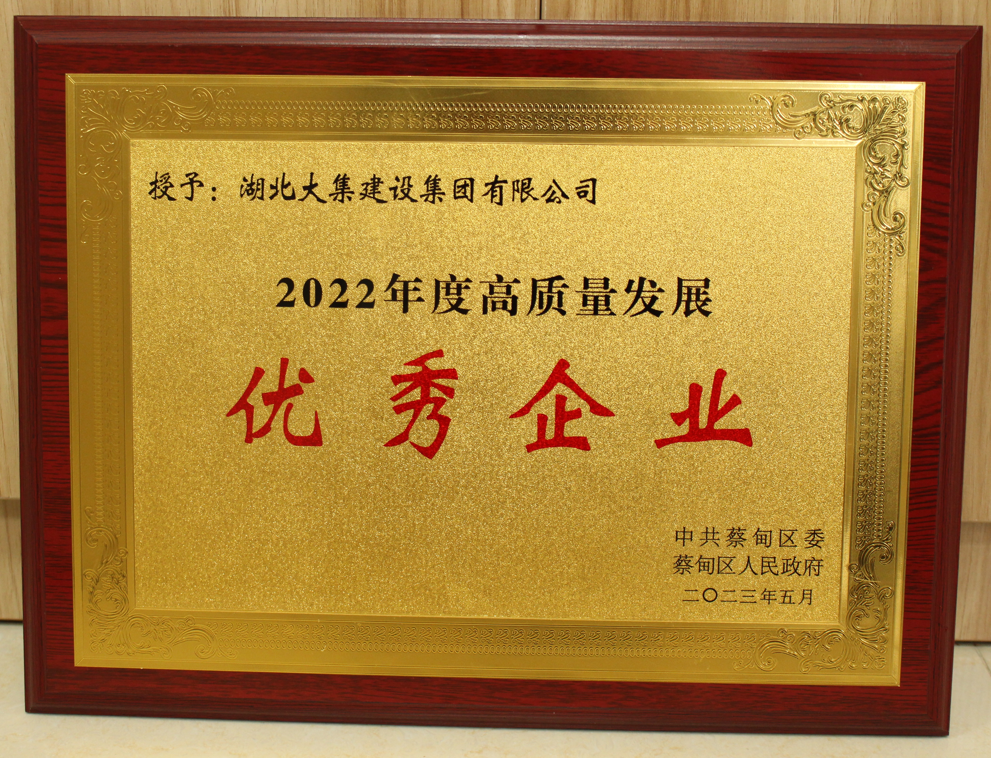 5月31日上午,中共蔡甸區(qū)委、蔡甸區(qū)人民政府組織召開了“蔡甸區(qū)學(xué)習(xí)大灣區(qū)經(jīng)驗(yàn)推動(dòng)高質(zhì)量發(fā)展大會(huì)”。大會(huì)表?yè)P(yáng)了一批突出貢獻(xiàn)企業(yè)和優(yōu)秀企業(yè),湖北大集建設(shè)集團(tuán)有限公司榮獲“2022年度高質(zhì)量發(fā)展優(yōu)秀企業(yè)”榮譽(yù)稱號(hào)。