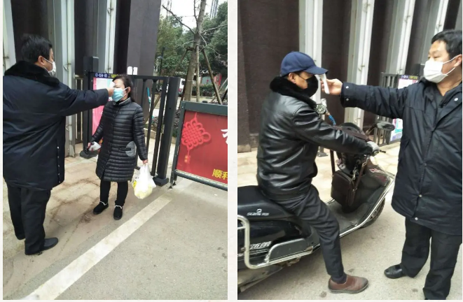 認(rèn)真對出入口人員進行體溫檢測、信息登記