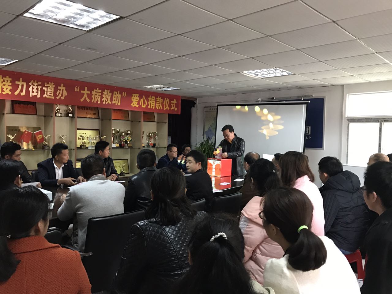 3月21日,湖北大集建設(shè)集團(tuán)響應(yīng)街道辦“大病救助”愛(ài)心捐款活動(dòng),在集團(tuán)總部舉行愛(ài)心捐款活動(dòng)儀式,陰沉的天氣并未阻擋大集人愛(ài)心奉獻(xiàn)的熱情,活動(dòng)現(xiàn)場(chǎng)人員爆滿,熱情洋溢,公司領(lǐng)導(dǎo),項(xiàng)目經(jīng)理和各位員工積極響應(yīng)捐款倡議,踴躍參與,一時(shí)間原本寬敞的會(huì)議室被擠的水泄不通。