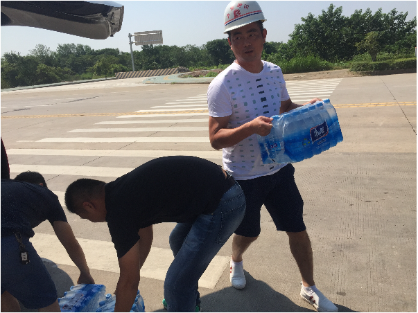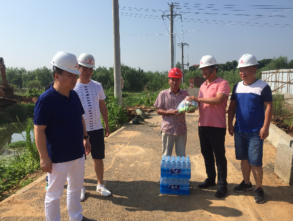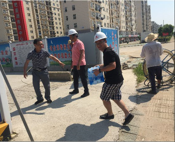 “現(xiàn)在天氣炎熱,大家要注意高溫施工安全,做好防暑降溫工作!”每到一處,公司總經(jīng)理和副總就耐心跟施工現(xiàn)場(chǎng)人員叮囑一番,同時(shí)要求相關(guān)負(fù)責(zé)人千方百計(jì)做好員工的后勤保障工作,加強(qiáng)對(duì)飲用水、食品和工地食堂衛(wèi)生管理,確保一線人員身體健康。慰問組人員親手把礦泉水、藥品等防暑降溫用品送到施工現(xiàn)場(chǎng)人員手上,施工現(xiàn)場(chǎng)負(fù)責(zé)人一致表示,將按照集團(tuán)公司領(lǐng)導(dǎo)的要求,認(rèn)真做好施工現(xiàn)場(chǎng)防暑降溫工作和安全生產(chǎn)工作,保證工程各項(xiàng)工作的順利開展。