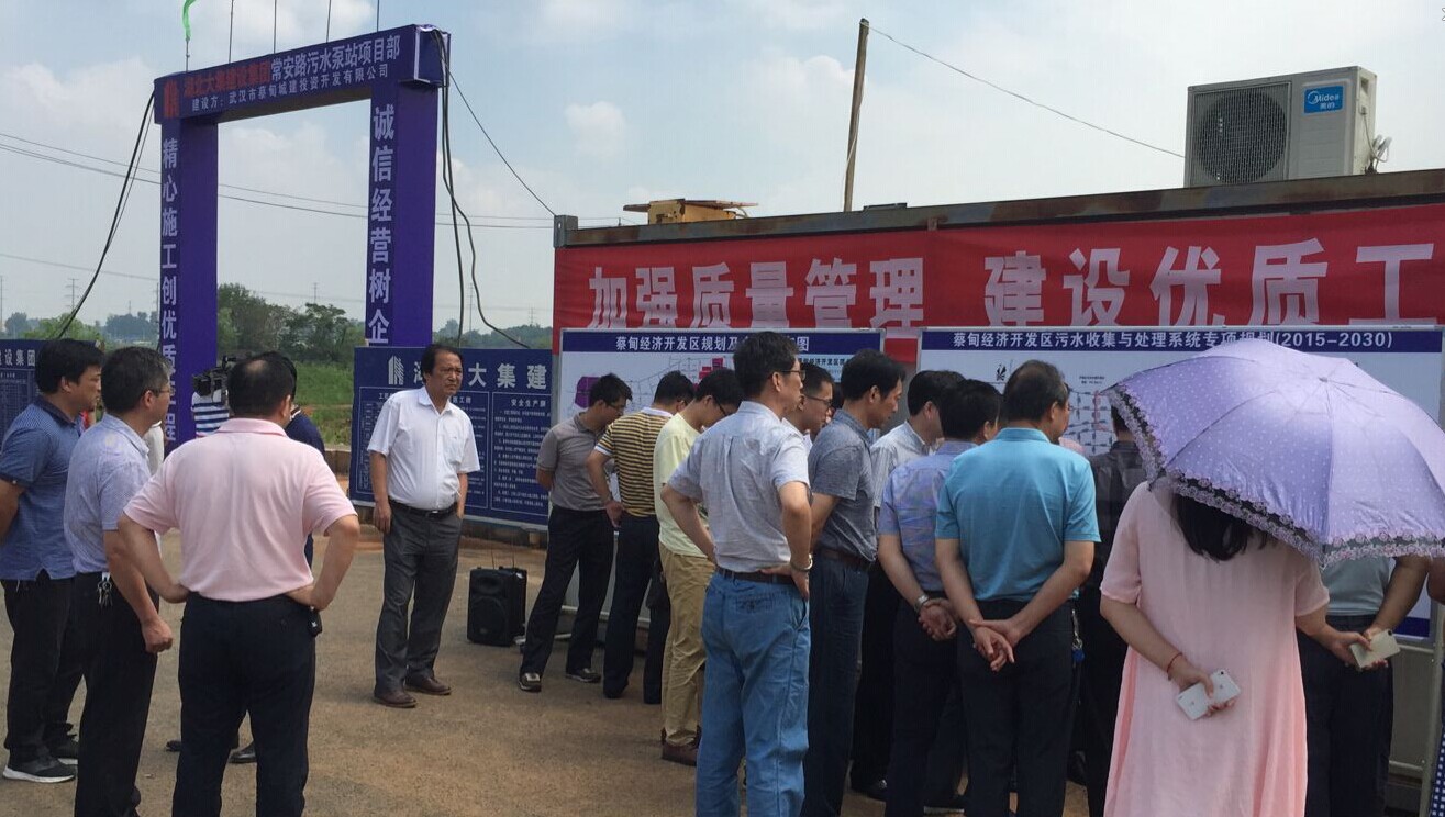 2016年8月10日,武漢市人大常委會副主任胡洪春一行前往我司項目部常安路污水泵站工程項目處,就“關(guān)于加快工業(yè)園區(qū)環(huán)?;A(chǔ)設(shè)施建設(shè),促進工業(yè)園區(qū)健康發(fā)展案續(xù)辦方案”工作進行調(diào)研。