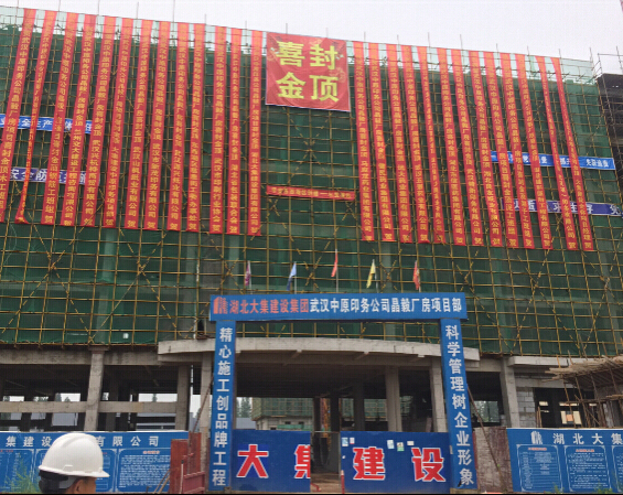2017年6月27日,歷時一年時間,在湖北大集建設集團重質量、保安全、趕工期、抓進度的配合下,中原印務1#樓主體順利封頂。集團董事長徐濤、總經理徐遠征、副總經理徐家富及該項目重要骨干陪同中原印務董事長及其公司高層領導共同見證這一喜慶時刻。