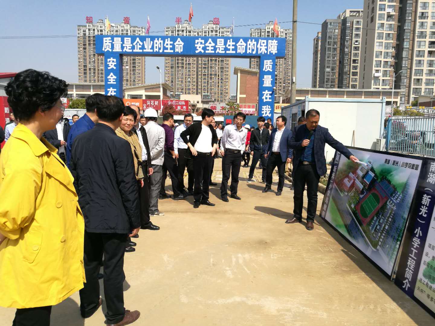 2018年3月28日上午10:00,蔡甸區(qū)2018年第一季度“重大項(xiàng)目拼搏趕超現(xiàn)場(chǎng)會(huì)”走進(jìn)蔡甸區(qū)南湖(新光)小學(xué)在建項(xiàng)目部,參加出席的人員有:蔡甸區(qū)區(qū)長(zhǎng)彭巧娣,蔡甸區(qū)黨委、政府、人大、政協(xié)領(lǐng)導(dǎo),蔡甸區(qū)教育局以及各部、委、局主要領(lǐng)導(dǎo),各鄉(xiāng)、鎮(zhèn)、廠主要負(fù)責(zé)人等共計(jì)100余人。