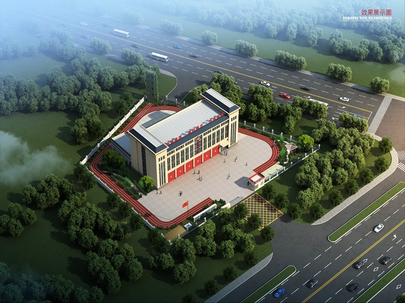 大集消防站項目位于蔡甸區(qū)大集街知音湖大道與天鵝湖大道交叉口西南角,總建筑面積3848.62平方米,平行知音湖大道布置1棟4層業(yè)務(wù)大樓,南端垂直業(yè)務(wù)大樓附建1棟1層食堂,另外配套有訓練塔、門房等輔助設(shè)施。業(yè)務(wù)大樓和食堂外側(cè)為環(huán)形消防車道(兼作訓練跑道),項目分別朝向知音湖大道和天鵝湖大道開設(shè)主、次出入口。