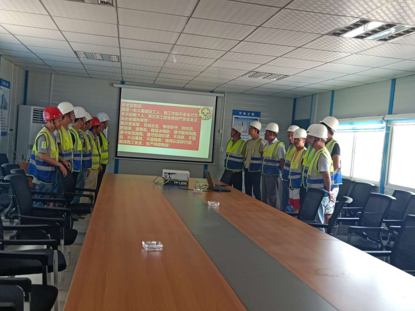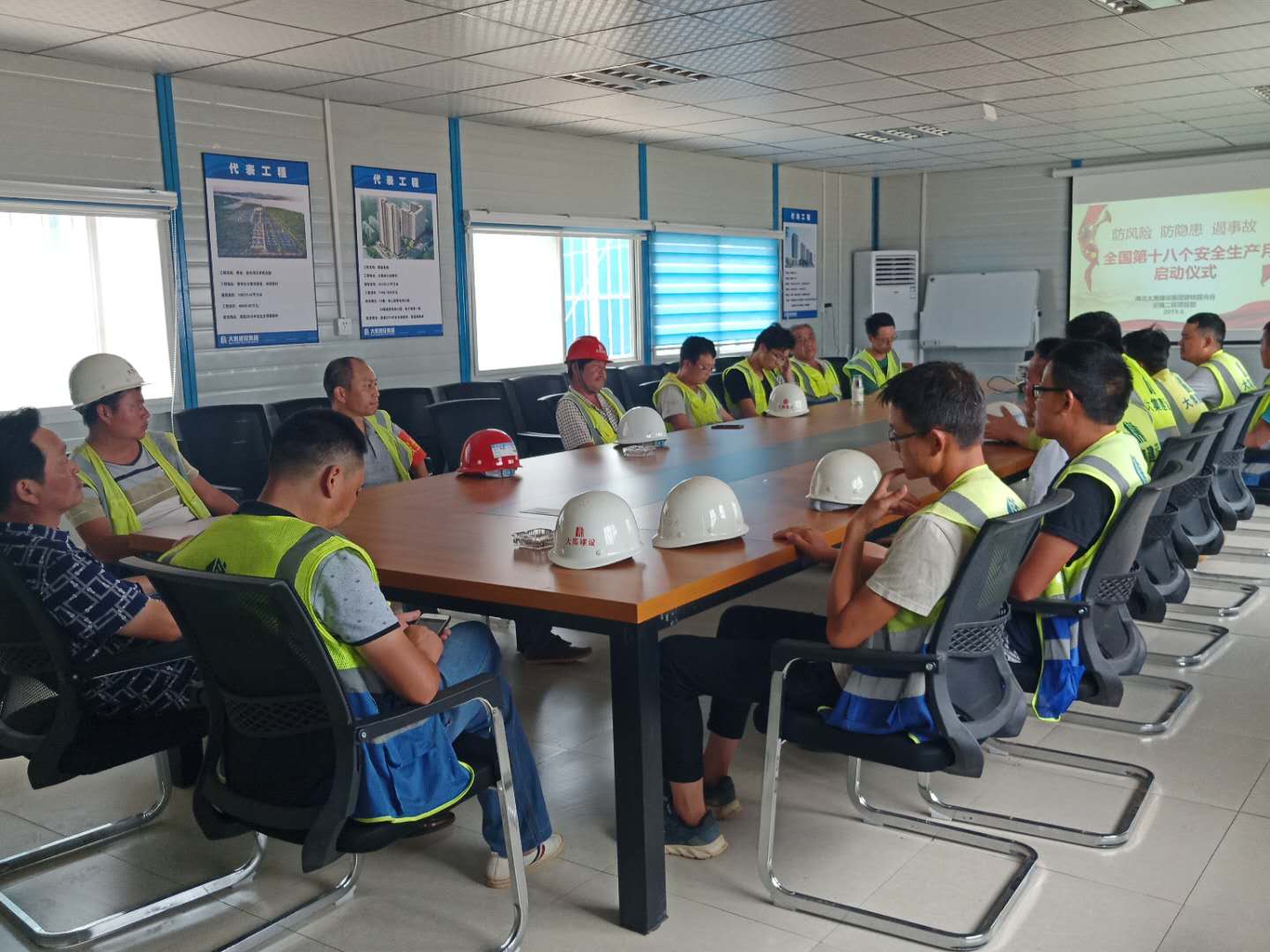 啟動(dòng)儀式上,生產(chǎn)經(jīng)理陳超首先向大家講解了防范化解重大風(fēng)險(xiǎn),及時(shí)消除安全隱患,有效遏制生產(chǎn)安全事故的重要性,并著重強(qiáng)調(diào)了夏季高溫防中暑的各項(xiàng)安全措施、夜間施工現(xiàn)場(chǎng)照明及檢查監(jiān)督事項(xiàng)。隨后,組織了全體人員進(jìn)行安全月活動(dòng)的宣誓。通過集體安全宣誓,進(jìn)一步推動(dòng)了現(xiàn)場(chǎng)施工人員由“要我安全”為“我要安全”觀念的轉(zhuǎn)變,現(xiàn)場(chǎng)施工人員也紛紛表態(tài)要堅(jiān)守安全生產(chǎn)這條紅線,確保工程項(xiàng)目順利安全推進(jìn)。