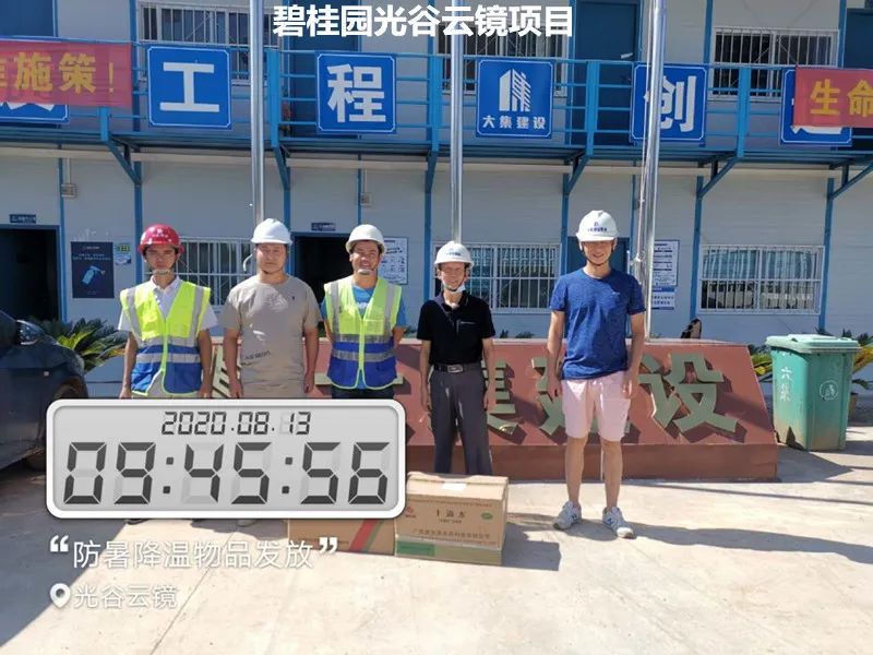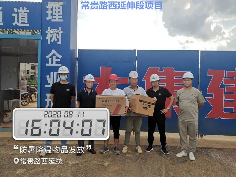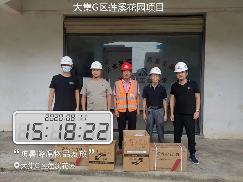 大集G區(qū)蓮溪花園項目、大集街農(nóng)村污水治理項目、大集景綠網(wǎng)紅特色小鎮(zhèn)項目、世茂龍灣47#號地塊別墅樓工程、黃星大道加油站項目、年產(chǎn)80萬套總成項目、常貴路西延伸段項目、泰禾君悅花園項目、碧桂園光谷云鏡項目……每到一處,集團工程部都會將購買好的毛巾、風(fēng)油精、人丹、十滴水、藿香正氣水、蚊不叮等防暑降溫物資送到項目人員手中,并要求各項目部一定要把施工人員的身體健康放在首位,要在全力以赴抓質(zhì)量、搶進(jìn)度、創(chuàng)佳績的同時,嚴(yán)格按照國家有關(guān)規(guī)定,把防暑降溫工作落實好、做到位,要根據(jù)天氣氣溫的變化,合理安排工作時間,作好安全預(yù)防措施、備足防暑降溫物質(zhì),讓員工們安全度過高溫天氣。