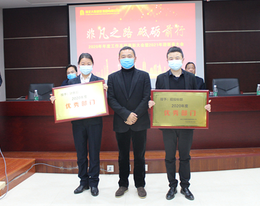 1月20日下午,集團公司隆重召開2020年年度工作總結(jié)表彰大會暨2021年迎新春大會。按照疫情防控工作相關(guān)要求,大會嚴格做好各項防控工作,控制會場人數(shù),采取“線上+線下”的形式召開,集團領(lǐng)導、全體員工、各項目經(jīng)理,以及受表彰個人和團隊代表在現(xiàn)場參會,其他員工通過微信群直播的形式參會。大會全面總結(jié)了過去一年的各項工作,對一年來在公司生產(chǎn)經(jīng)營管理各項工作中做出突出貢獻的先進集體和先進個人進行了表彰,安排部署了2021年集團公司的各項工作。