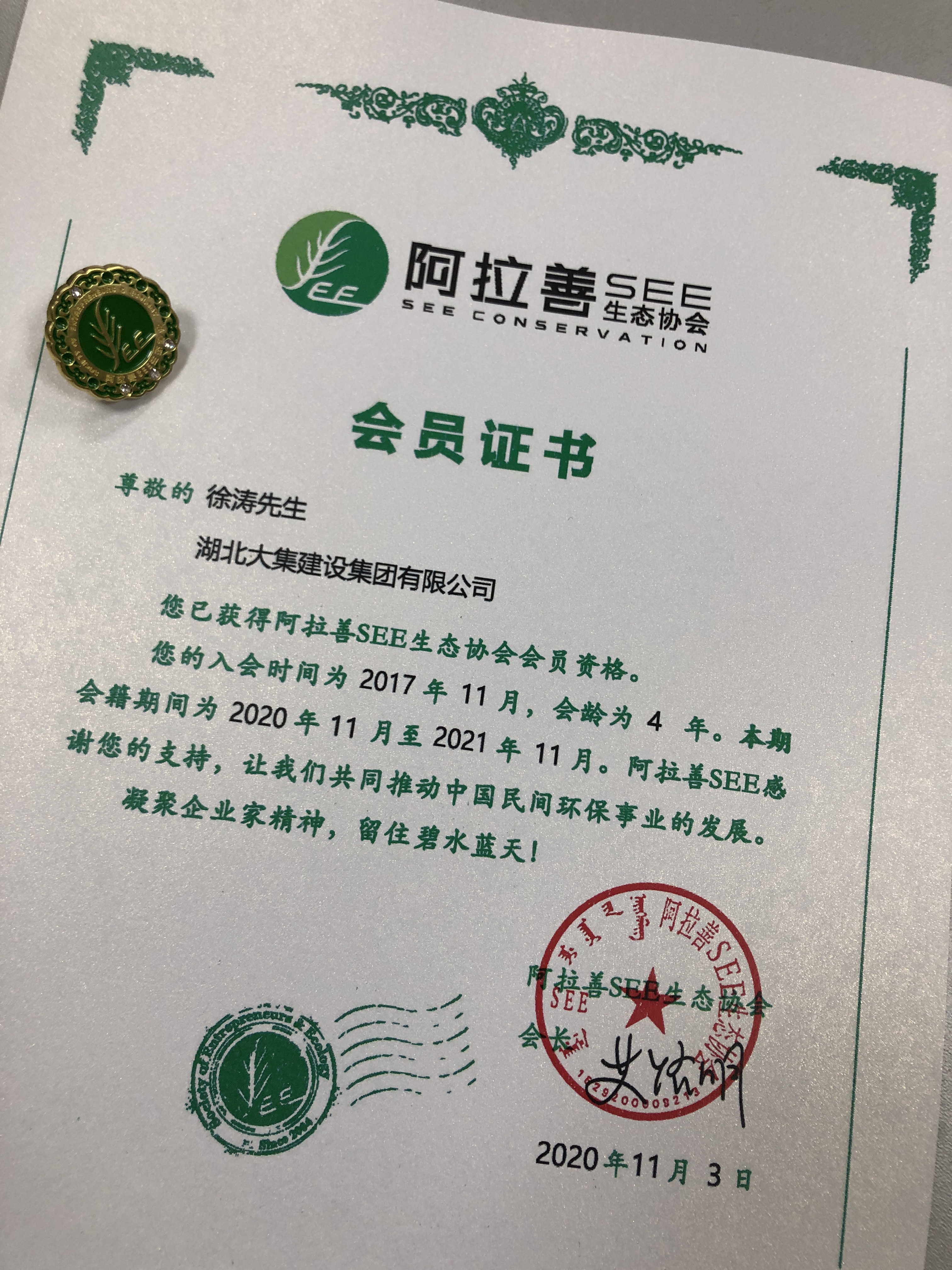 今年,是集團(tuán)公司加入阿拉善SEE生態(tài)協(xié)會(huì)的第四年。在環(huán)保這條路上,湖北大集建設(shè)集團(tuán)在董事長(zhǎng)徐濤的帶領(lǐng)下將繼續(xù)攜手阿拉善SEE,與一個(gè)又一個(gè)同行者一起,把善念善行落實(shí)到公益環(huán)保項(xiàng)目中,凝聚企業(yè)家精神,推動(dòng)環(huán)保公益,力爭(zhēng)為中國(guó)的環(huán)保事業(yè)做出更大的貢獻(xiàn),保護(hù)生態(tài)地球,共建美好家園。